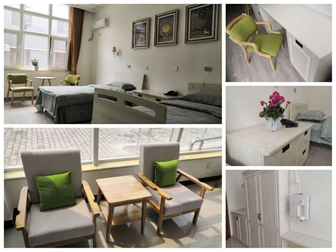 房间分为单人间、双人间和套间。房间内均配有独立卫生间,除了日常家具家电,还配备了健康安全的多层净化直饮水机和可随时随地呼叫服务的无线呼叫系统以及方便轮椅进出的子母门。