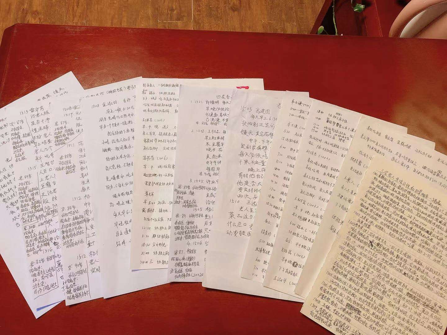 这件事启发了我,俗话说,好记性不如烂笔头。院里的大多数老人生活都很有规律,如果把老人的生活习性编辑成手册,无论谁接手护理,都能一目了然,熟练开展工作。我茅塞顿开,说干就干,召集所有护理师傅,以每个楼层为单位,把每位老人的生活习性的记录工作分配下去。护理师傅们真给力,不到一周,每位老人的生活习性都记录下来了。细化到老人喜欢吃米饭还是馒头?吃多少?老人的爱好?脾气秉性?喜怒哀乐?以及家属的需求等等都记录得非常全面。