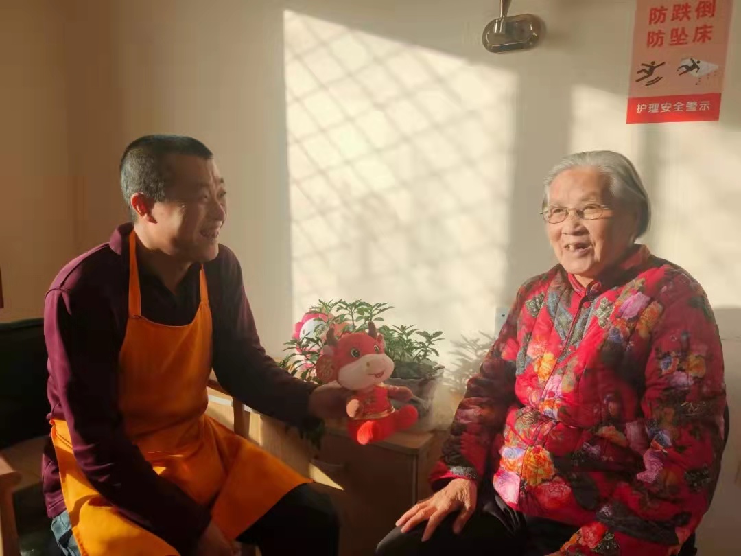 鞠师傅性格开朗,喜欢说笑逗唱。所以和老人沟通,对于鞠师傅来说,相对容易。只要老人喜欢,鞠师傅就会陪着老人天南地北聊一聊。